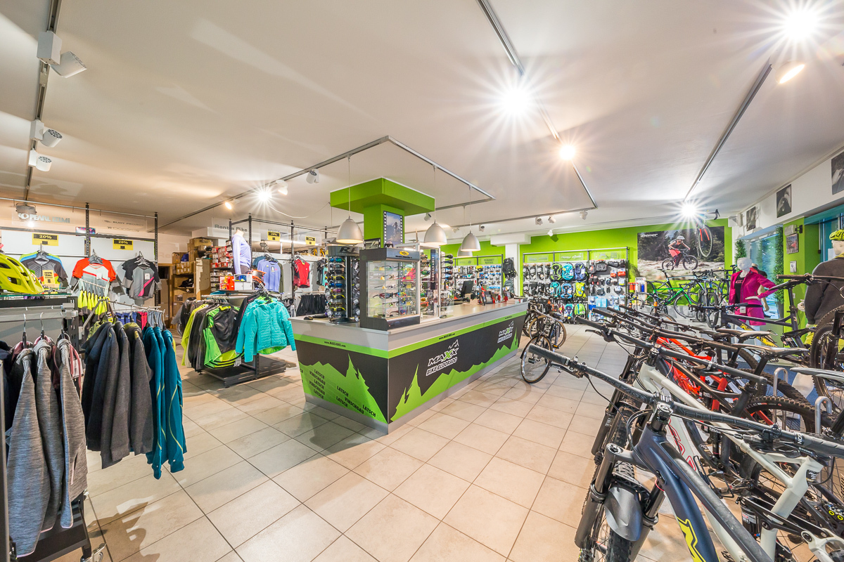Zustätzlich zu allen Bikeservices inhouse gehört zum Jagdhof auch ein Bikeshop, das "Maxx Bikeldorado". Dort gibt es nicht nur schicke Bekleidung, Ausrüstung, Helme und vieles mehr rund ums Thema Biken, sondern auch Leihbikes und Leih-E-Bikes, sowie eine Bikewerkstatt mit ausgebildeten Radmechanikern.