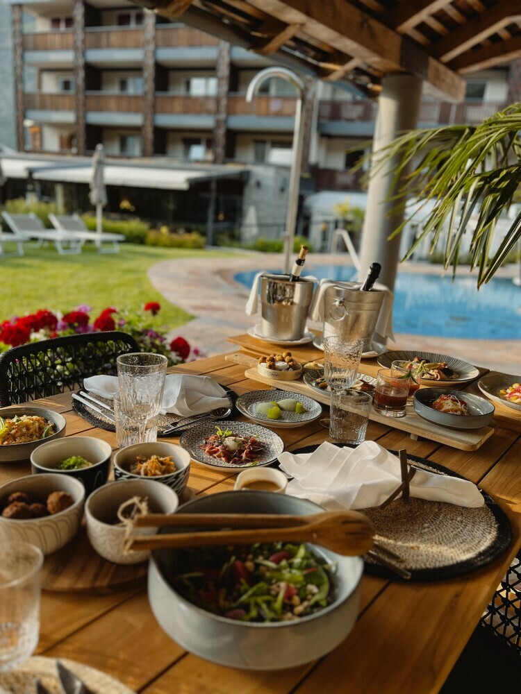 Wenn Ihr mal anstelle des klassischen Menüs eine coole Abwechslung möchtet, ist dies die perfekte Gelegenheit dafür! In unserer neuen Outdoor Lounge neben dem Pool verwöhnen wir euch mit einem Tisch voller Antipasti und Tapas aus der ganzen Welt.