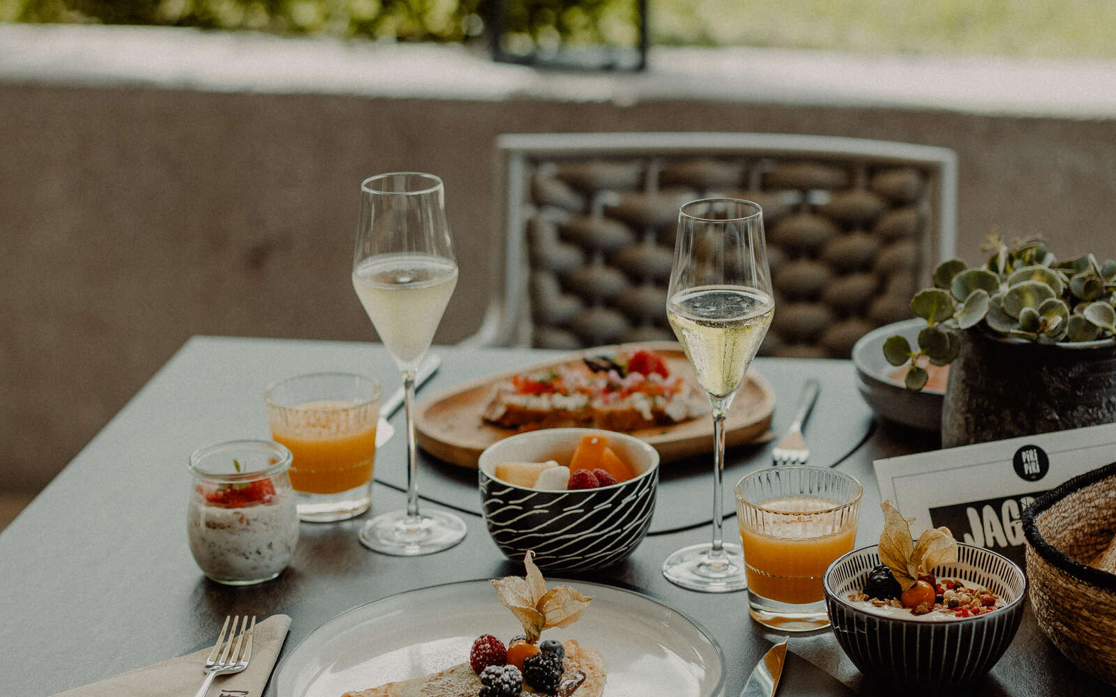 Der Tag beginnt bereits bei einem grandiosen Frühstück im lichtdurchfluteten Restaurant oder auf der Terrasse. Nachmittags, gibt‘s ein leckeres Buffet mit Antipasti und leckeren Desserts und abends verwöhnen wir euch dann richtig bei insgesamt zwei 5-Gang-Menüs.