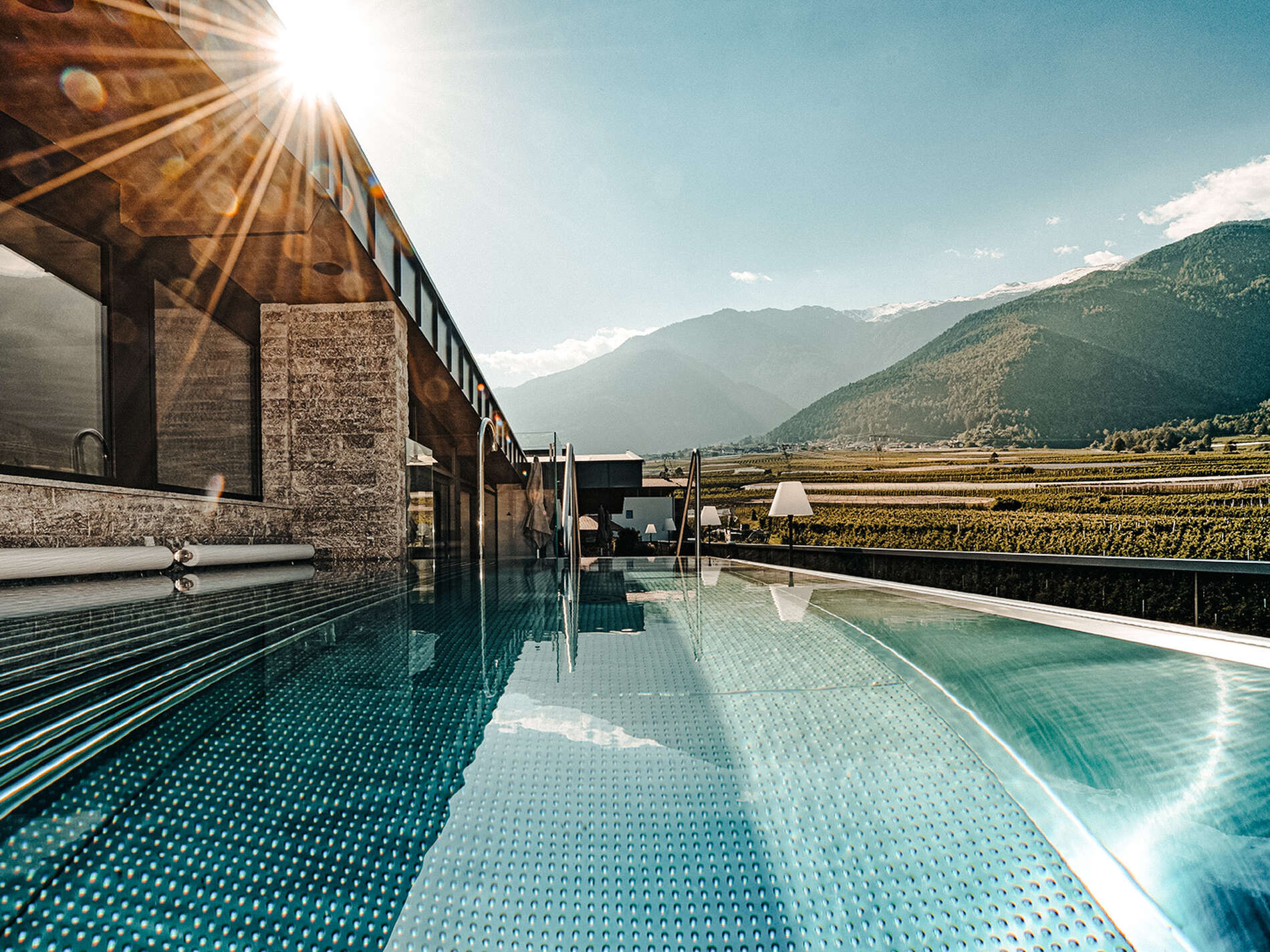 Entspannung pur auf 3.000 m²: Freue Dich auf Saunen, Pools, Jacuzzis, Ruhebereiche, über 60 Beauty-Anwendungen und unser Highlight – der Roof Top Sky Spa mit traumhaftem Vinschgau-Blick.